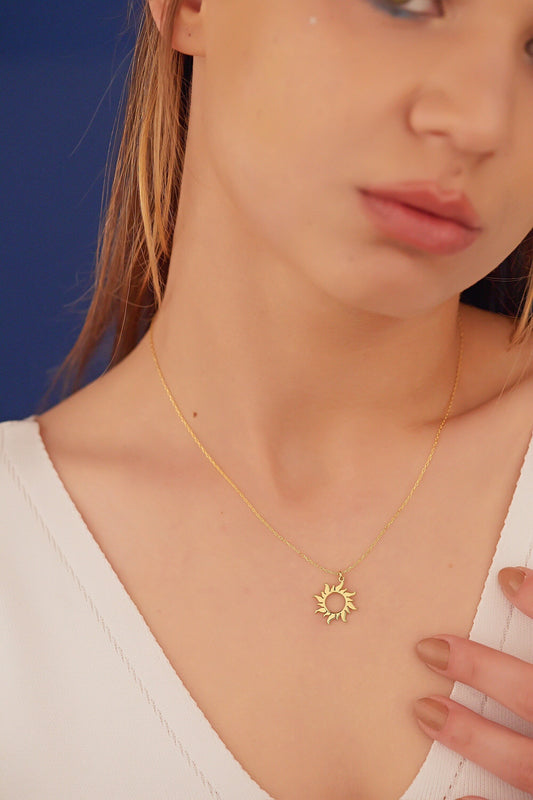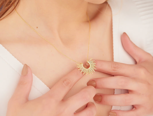 14K Solid Gold Sunburst Necklaces - 14K Gold Sunshine Necklace - Necklace for Women - Celestial Jewellery - Gift For Her - 14K Jewellery
