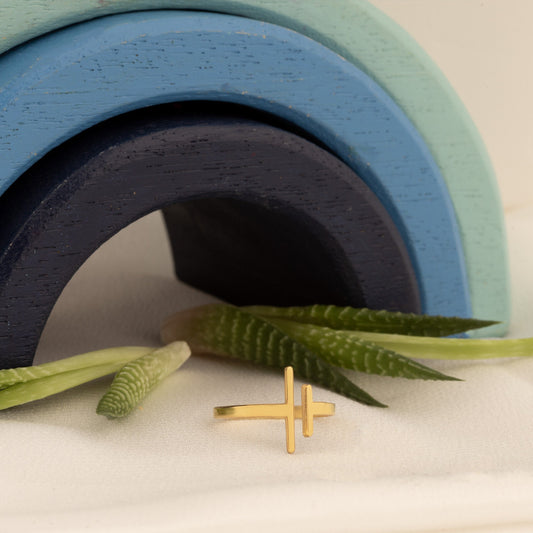 14K Solid Gold Adjustable Open Bar Ring - 14K Gold Open Cuff Ring - Asymmetric Bar Open Ring - Adjustable Rings For Women For Men