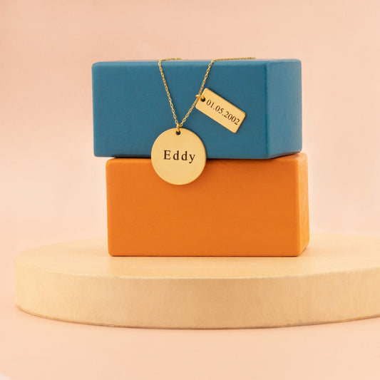Baby Name Necklace - Date of Birth Necklace - Customized Name Pendant - Gift for New Mother - Anniversary Gift - Birthday Gift