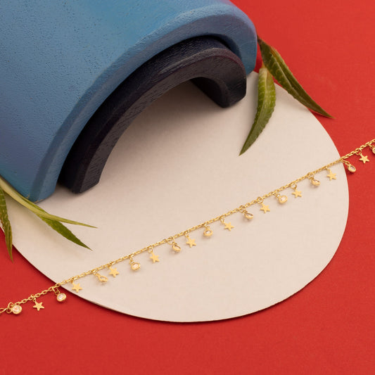 Anklet Bracelet with Charms - Christmas Gift - Ankle Chain - Stars Charm Anklet - Charm Anklet - Dainty Charm Anklet - Gift for Her