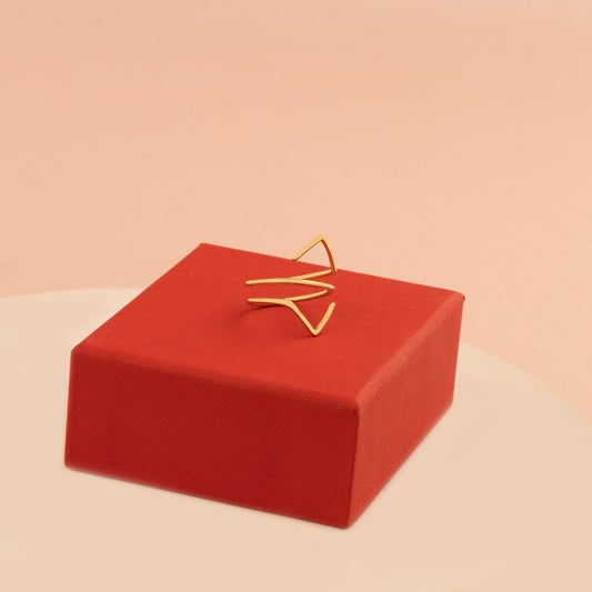14K Solid Gold Splint Ring - Gold Double V Ring - 14K Solid Gold V Shape Finger Wrap Ring - Thumb Simple Ring - Spiral Dual V Ring for Women