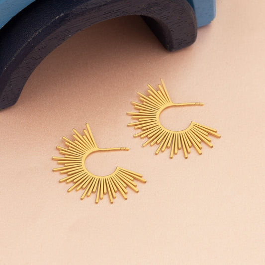 14K Sunburst Earrings - Christmas Gift - 14K Gold Sunshine Earrings - Solid Gold Half Sunbeam Earrings for Women - Dainty Celestial Studs