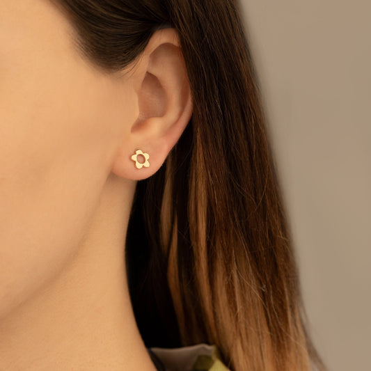 14K Solid Gold Daisy Stud Earrings - Minimalist Jewellery - 14K Gold Tiny Daisy Stud Earrings - Gift for Her Everyday Earrings