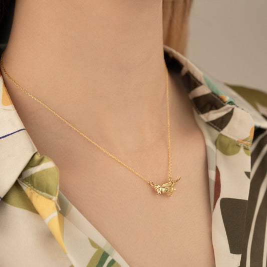 3D Gold Fairy Necklace - 3D Jewellery - Pixie Wings Necklace - Gift for Her - Gift for Kids - Fairytale Jewellery - Tinkerbell Necklace