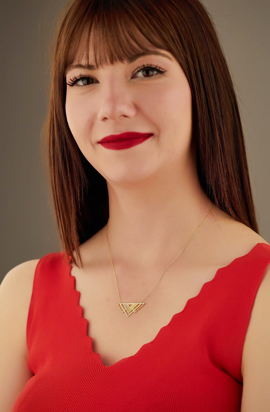 Geometric Triangle Necklace - Christmas Gift - Gift for Her - Interlaced Geometric Necklace - Gold Open Triangle Necklace - Gift for Mother