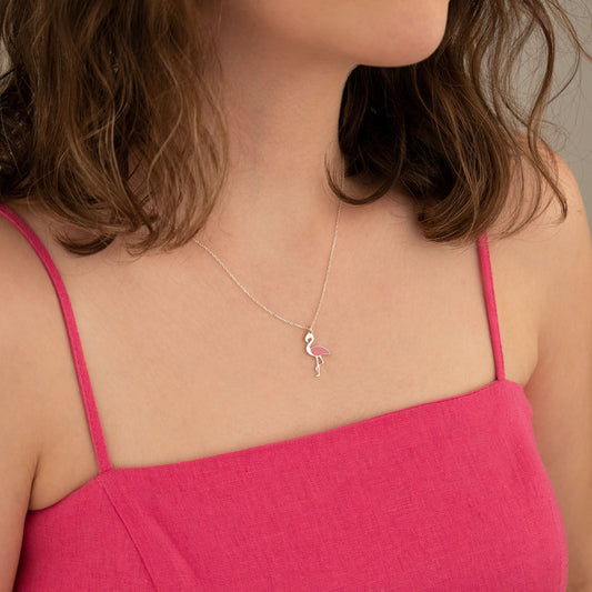 Flamingo Pendant Necklace - Christmas Gift - Enamel Bird Necklace - Dainty Bird Charm Necklace Women - Pink Flamingo Necklace - Gift for Her