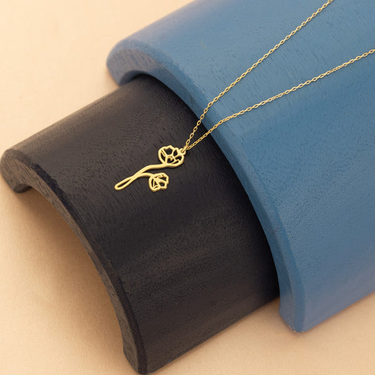 Gold Birth Flower Necklace - Birthday Flower Necklace - Dainty Birth Flower & Zodiac Necklace - Personalized Jewellery - Birthday Gift