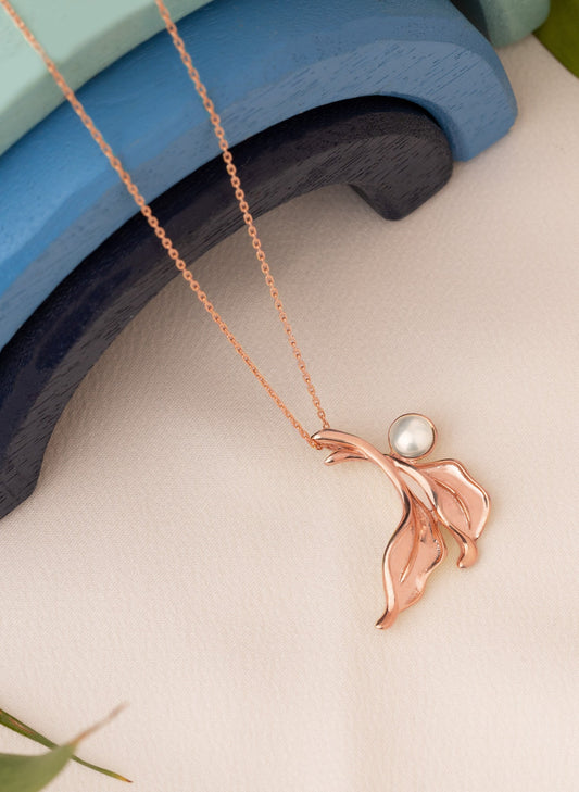 Gold Leaf Necklace With Pearl - Wedding Jewellery - Bridal Gold Pearl Necklace - Oxidized Silver Necklace - Gift for Her
