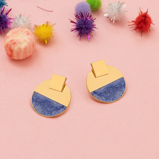 Modern Double Round Earrings - Christmas Gift - Enamel Ocean Earrings - Stud Dangle Earrings - Handmade Earrings - Gift for Her