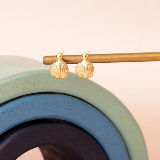 Gold Sea Shell Stud Earrings - Gift for Her - Gold Summer Jewellery - 925 Sterling Silver Seashell Earrings Natural Jewellery