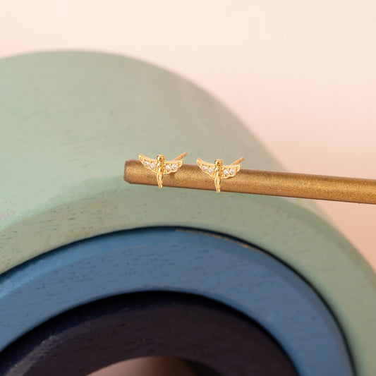 Gold Minimalist Angel Stud Earrings - Angel Earrings - Dainty Angel Earrings - Handmade Jewellery - Guardian Angels - Protection Angel Studs