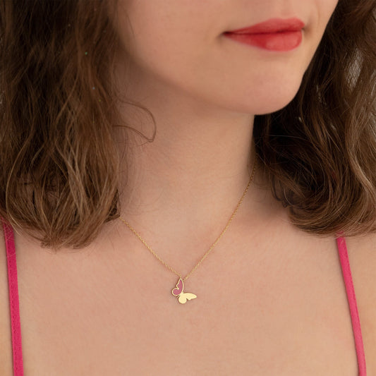 Butterfly Enamel Necklace - Pink Butterfly Necklace - Hope and Faith Necklace - Bug Jewelry - Summer Jewelry - Gift for Her