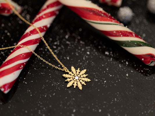Christmas Snowflake Necklace - Winter Jewellery - Christmas Gift - Snowflake Gifts - Snowflake Necklace With CZ Stone - Christmas Necklace