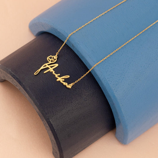 Birth Flower Name Necklace - Gold Birthday Necklace - Personalized Birth Flower Name Necklace - Silver Name Necklace - Birthday Gift For Her