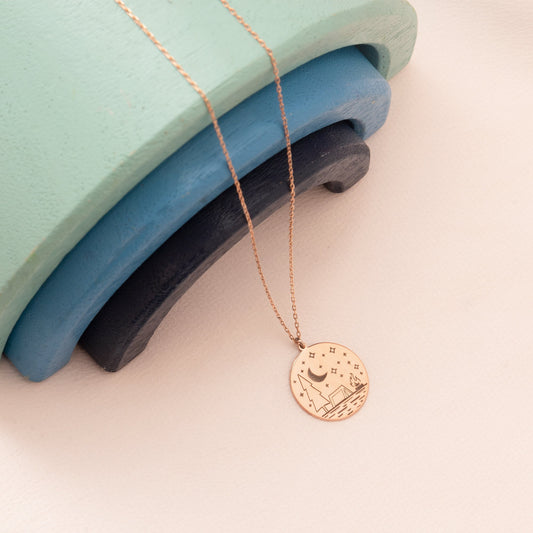 Camp Under The Stars Necklace - Nature Necklace - 925 Sterling Silver Camper Pendant - Nature Travel Jewellery - Gift For Her - Gift For Him