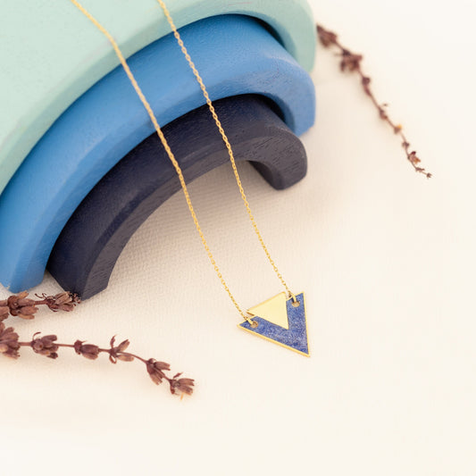 Blue Enamel Double Triangle Necklace - Gold Enamel Diamond Shape Necklace - Gift For Her - Diamond Symbol Necklace - Handmade Jewellery