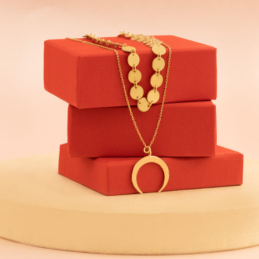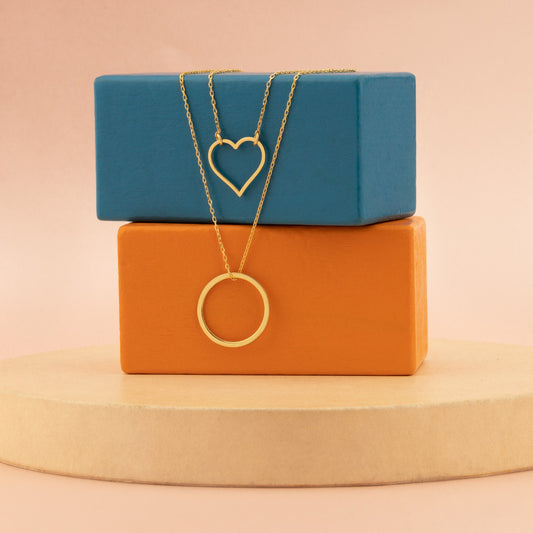 Double Layered Necklace - Double Chain Heart Necklace - Round Necklace - Lariat Necklace - Round Necklace - Necklace for Women
