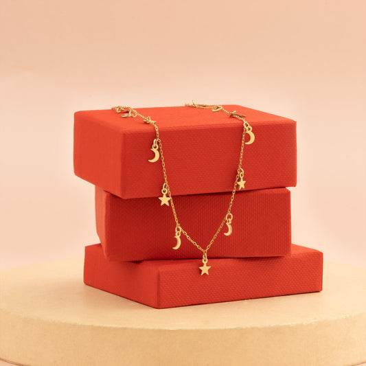 Dainty Moon and Star Necklace - Christmas Gift - Delicate Moon and Star Necklace - Layered Neclace - Space Jewelry - Dangle Stars and Moon