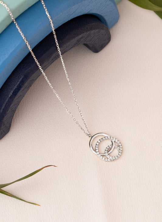 Double Circle Necklace - Couple Necklace - CZ Circle Necklace - Pave Circle Necklace - Interlocking Necklace - Couple Jewellery