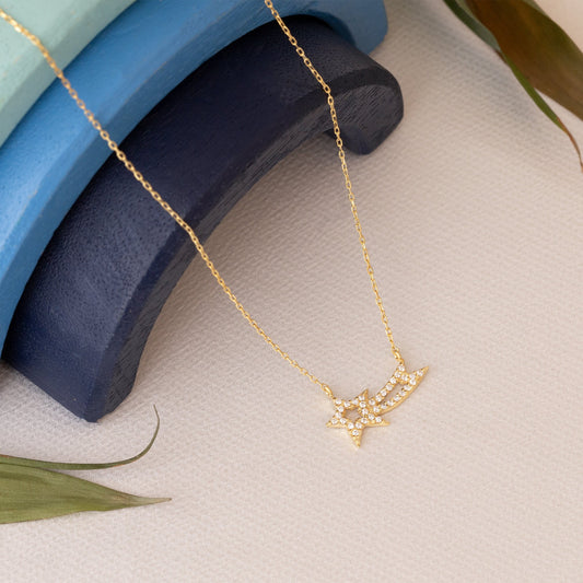 Diamond Shooting Star Necklace - Comet Star Necklace With Cz Stone - Gold Star Necklace - Celestial Jewellery - Gift For Her